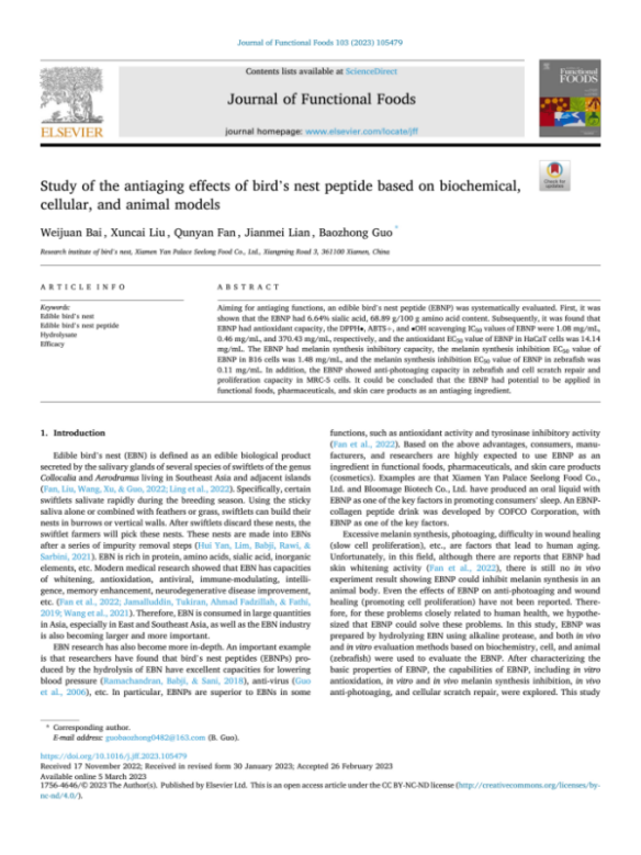 圖:燕之屋燕窩肽權威SCI收錄論文