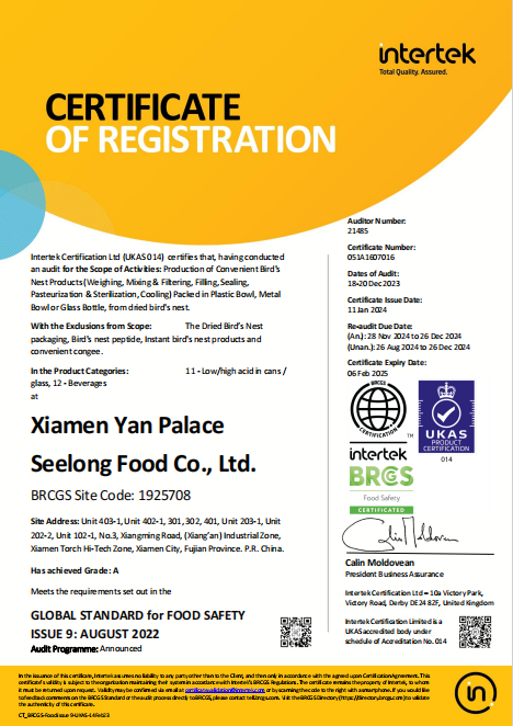 為了響應(yīng)美國(guó)官方的高標(biāo)準(zhǔn)要求,燕之屋分別通過(guò)了HACCP食品管理體系認(rèn)證、BRC全球食品安全標(biāo)準(zhǔn)認(rèn)證、IFS國(guó)際卓越標(biāo)準(zhǔn)認(rèn)證和食品出口備案資質(zhì),參加了美國(guó)FDA指定的由中國(guó)檢驗(yàn)檢疫科學(xué)院舉辦的BSPC培訓(xùn),并順利通過(guò)考核獲得出口資格,通過(guò)了FDA、FCE、SID注冊(cè)。此外,燕之屋更主動(dòng)將產(chǎn)品送至權(quán)威檢測(cè)機(jī)構(gòu)SGS,152項(xiàng)指標(biāo)檢測(cè)全部合格通過(guò),印證燕之屋卓越產(chǎn)品力。2024年10月25日,燕之屋在廈門(mén)海關(guān)系統(tǒng)報(bào)檢通關(guān)。之后,燕之屋旗下高品質(zhì)燕窩產(chǎn)品冰糖官燕(60gx6、60gx12)、碗燕·禧孕款(80gx3)、碗燕·尊享款(158gx6)、碗燕·甄愛(ài)款(108gx6)、碗燕·濃鮮款(138gx10)通過(guò)美國(guó)食品藥品管理局(FDA)審批,順利運(yùn)抵紐約,正式上架開(kāi)售,為當(dāng)?shù)叵M(fèi)者帶來(lái)來(lái)自中國(guó)的高端尊貴滋養(yǎng)。