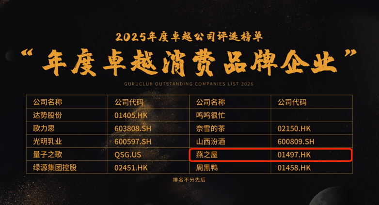 圖:2025年度卓越公司評選榜單——“年度卓越消費(fèi)品牌企業(yè)”