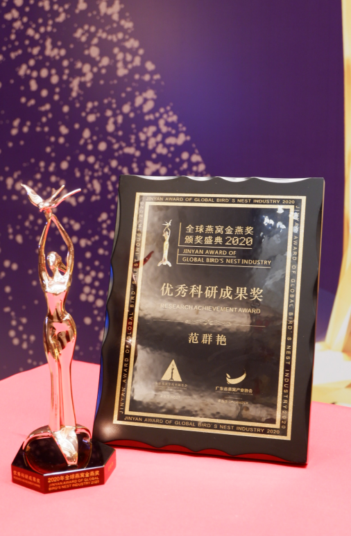 范群艷積極主動(dòng)帶領(lǐng)團(tuán)隊(duì)進(jìn)行燕窩相關(guān)研究項(xiàng)目,推動(dòng)產(chǎn)生眾多優(yōu)秀科研成果,為燕窩產(chǎn)品的創(chuàng)新發(fā)展做出杰出貢獻(xiàn)。在“2020年度全球燕窩金燕獎(jiǎng)”頒獎(jiǎng)典禮,范群艷榮獲“優(yōu)秀科研成果獎(jiǎng)”;在2020第四屆中國食品產(chǎn)業(yè)發(fā)展年會,范群艷作為主要完成人之一的項(xiàng)目——《即食燕窩系列產(chǎn)品的關(guān)鍵技術(shù)創(chuàng)新及其產(chǎn)業(yè)化》榮獲“中國食品工業(yè)協(xié)會科學(xué)技術(shù)獎(jiǎng)特等獎(jiǎng)”。懷揣著對燕窩事業(yè)的執(zhí)著追求和滿腔赤忱,范群艷潛心專研,斬獲了諸多行業(yè)榮譽(yù),取得協(xié)會認(rèn)可;同時(shí),作為燕之屋副總經(jīng)理、研發(fā)總監(jiān),范群艷以自身專業(yè)的研發(fā)能力帶領(lǐng)科研團(tuán)隊(duì),扎實(shí)做好技術(shù)和產(chǎn)品工作,不斷打磨提升品牌的核心競爭力,為市場提供更專業(yè)、更優(yōu)質(zhì)的燕窩產(chǎn)品,推動(dòng)燕窩行業(yè)的高質(zhì)量發(fā)展。